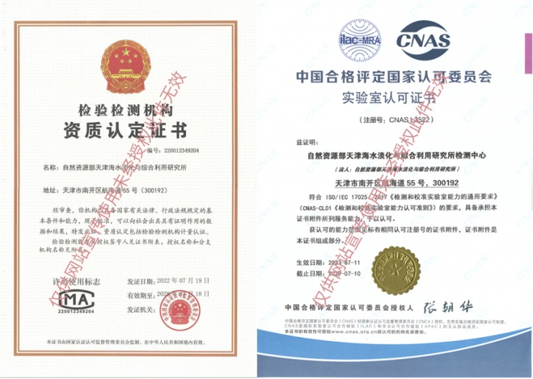 87898167 ( 国家海水及苦咸水利用产品质量检验检测中心 )