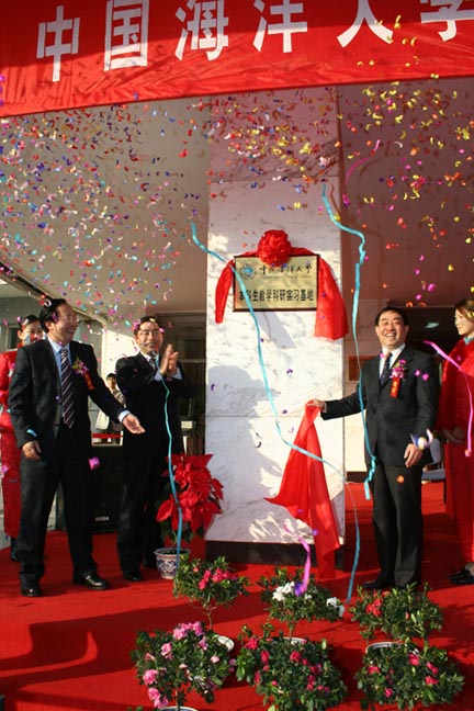仪式由淡化所党委书记高丰舟主持,仪式上,淡化所所长屈强、中国海洋大学校长吴德星分别致辞。屈强所长表示:大力推进海水利用是一项紧迫的战略任务,对于科技创新、人才培养需求迫切,双方合作协议的签订和两个基地的建设,不仅为淡化所开辟了一条高层次人才培养的新途径,也为今后双方在科研、教学、学术交流等方面开展全方位合作奠定了坚实的基础。希望通过校所合作,强强联合、优势互补、资源共享、共赢共进,对淡化所的科学研究、人才队伍建设以及我国海水利用专业人才的培养起到积极地推动作用。中国海洋大学校长吴德星表示,双方此次联手合作恰逢其时,中国海洋大学将充分发挥学科、人才优势,进一步与淡化所在人才培养、师资共享、成果转化和服务国家经济建设等方面开展更广泛合作。
