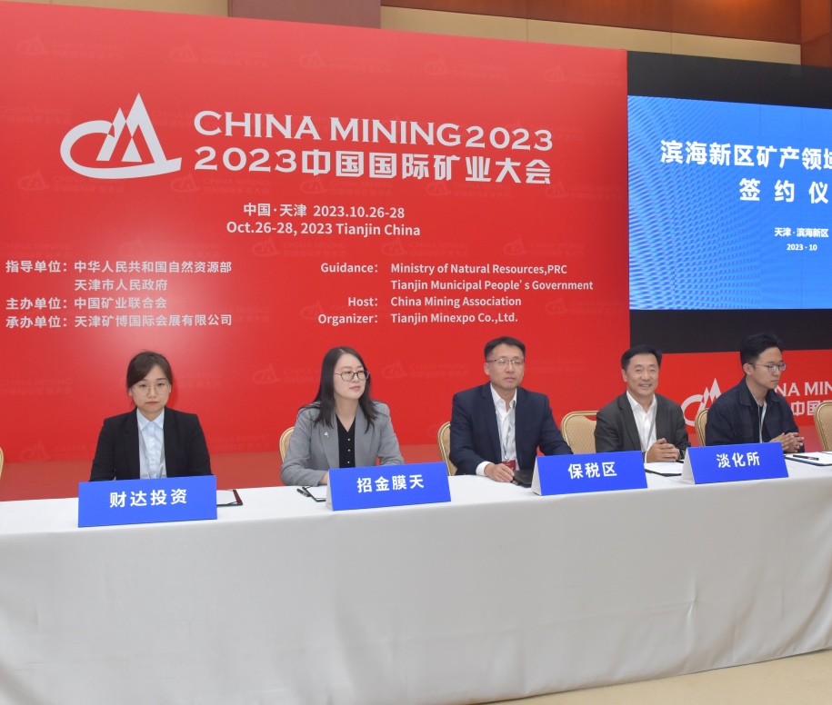 2023年10月26日, 在第二十五届中国国际矿业大会期间,自然资源部天津海水淡化与综合利用研究所(以下简称淡化所)与天津港保税区、山东招金膜天股份有限公司举行战略合作协议签署仪式。淡化所副所长张秋丰、招金膜天副总经理杨光炜和保税区相关领导出席仪式并分别代表三方签署了战略合作协议。