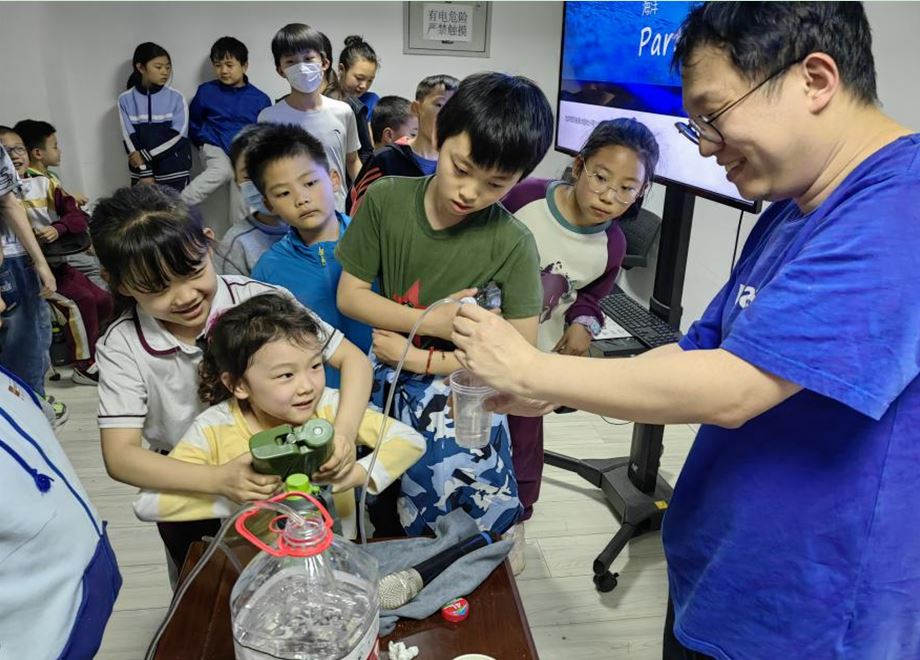在互动问答环节中,孩子们踊跃提问,现场气氛热烈。随后,在我所科研人员的指导下,大家分组参与了海水淡化装置动手操作,利用简易装置模拟了海水淡化过程,将海水转化为清澈的淡水。此次科普活动不仅让居民了解海水淡化的科学原理和应用价值,还增强了大家的环保理念,进一步提升了节水意识。