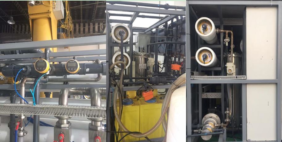三台样机应用于山东省长岛县喉叽岛、车由岛和高山岛。解决处理量小于100吨/天淡化系统无适用能量回收装置的难题,大幅降低能耗;相比于带PX能量回收装置淡化系统,省去增压泵,高压管路减少50%,高压仪表省去33%;相比于带PX能量回收装置淡化系统,启停步骤的控制程序减少30%;淡化系统的回收率跟柱塞式高压泵能量回收装置的流量比值相一致,对于产水率的小幅度变化柱塞式高压泵能量回收装置本身具备自适应功能,对于较大幅度变化,通过调节机构实现。通过3年的连续性能检测,数据表明其效率、噪音和能量指标表现优良,达到国际水平。