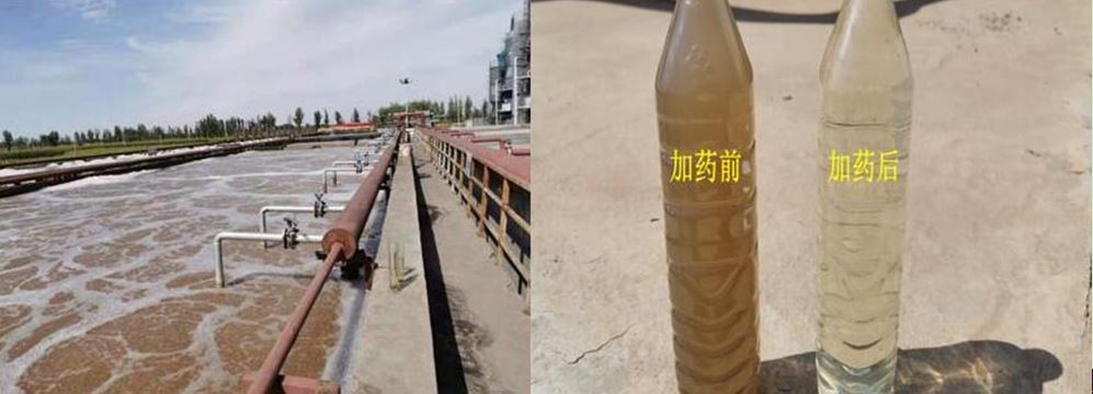 高孔藻基净水剂具有比表面积大、吸附性能强、安全无毒等特性。在生化处理阶段投加高孔藻基复合净水剂,可通过电位作用使生物污泥以高孔硅藻矿物为凝结核进行聚集,形成大颗粒物质,改善污泥的沉降效果。