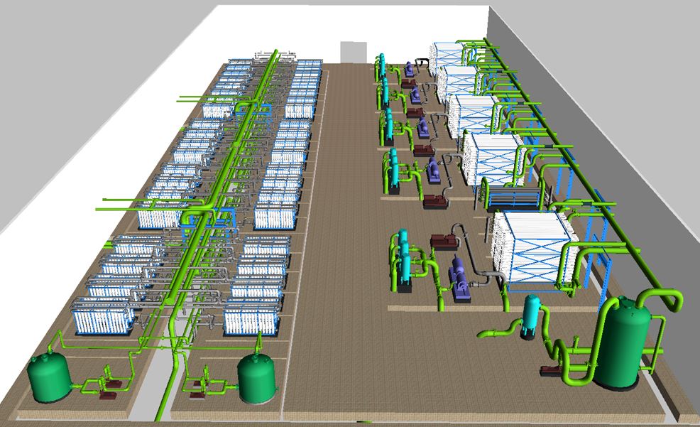 (2)具有可视化三维设计软件,可实现大型膜法淡化工程设计与实际工程的数字孪生设计,设计精准、高效;