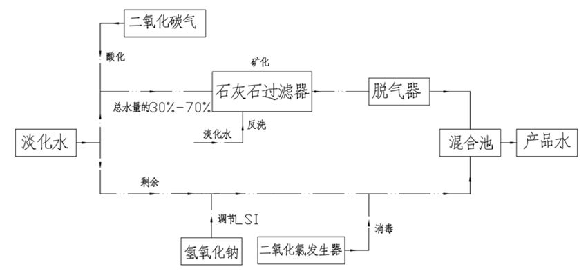 石灰石矿化后处理工艺具有不引入其他杂质组分、缓冲能力强且运行成本相对较低的优点,已逐渐成为国内外大型海水淡化工程后处理的首选工艺。